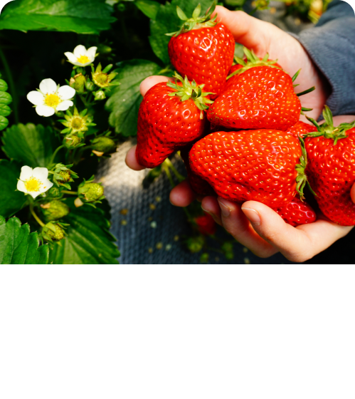深作農園のいちごは、栄養価にあふれる、味の濃いいちごです。有機質肥料を主体に使った豊かな味わいのいちごを、お子様からお年寄りまで、誰もが安心してお召し上がりいただけます。