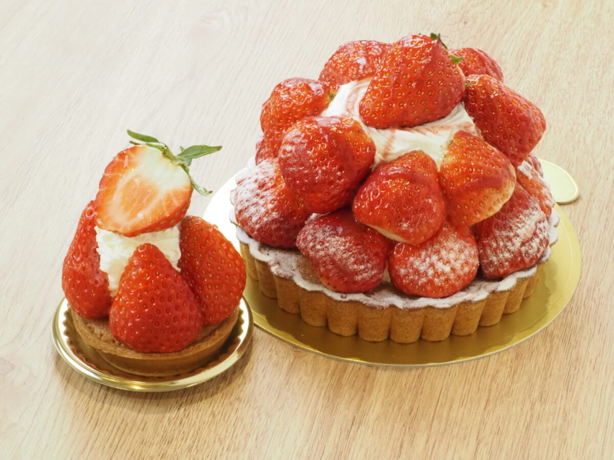 この「たっぷりいちごのしあわせタルト」とミニサイズの「しあわせいちごのプチタルト」。